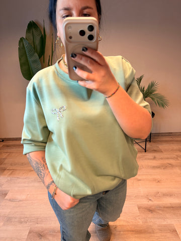 ✨ Schöner Pullover in Buttertoff mit Glitzer-Schleife ✨ Dieser elegante Pullover in einem zarten Buttertoff ist...