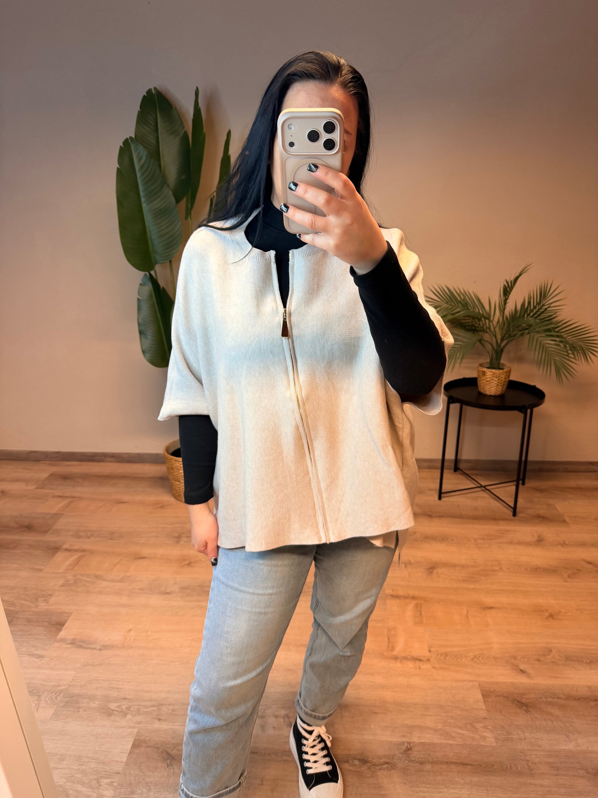 Dieser lässige Cardigan überzeugt mit seinem leicht kürzer geschnittenen Design und einem praktischen Reißverschluss. Die verlängerte Rückenpartie sorgt für eine schmeichelhafte Silhouette und einen modernen Look. Dank der großzügigen Passform ist das Modell vielseitig tragbar – von Größe 34 im Oversize-Stil bis Größe 52 angenehm locker. Ob offen oder geschlossen getragen, dieser Cardigan lässt sich mühelos zu verschiedenen Outfits kombinieren und ist ein echtes Wohlfühlteil für jede Jahreszeit.